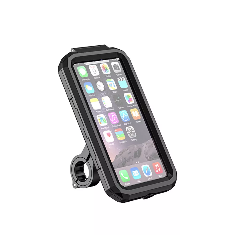 Ride confidently in any weather with this Waterproof Motorcycle Handlebar Cell Phone Holder Case. This universal black case securely mounts to most motorcycle handlebars and is built with durable, weather-resistant materials. The clear front cover allows for touch screen functionality, making it easy to use navigation or access your phone while riding. Perfect for commuters and touring riders, this case keeps your phone safe from rain, dust, and vibration while offering a secure and adjustable grip on your bike.